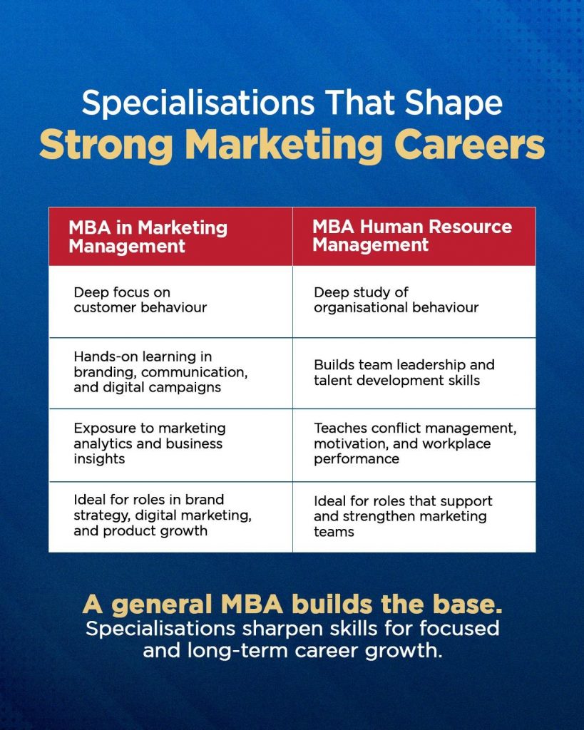 A general MBA teaches you business management. Students who need deeper learning choose MBA in Marketing Management. This path helps you understand branding and communication. It also introduces digital marketing and analytics.